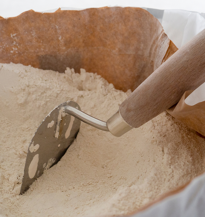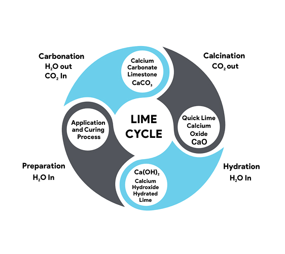 The slaked lime, once dried and ground into a fine powder, is referred to as hydrated lime. The powdered form is the key ingredient in lime plaster and is mixed with water and aggregates like sand to create a workable paste. Once it has been applied, the lime plaster undergoes a process called carbonation, where it sequesters the surrounding carbon dioxide that is present in the air to then slowly harden and revert back to calcium carbonate or limestone. This carbonation process is essential for the durability and longevity of lime plaster, as it allows the material to strengthen over time, creating a breathable and resilient mineral skin.